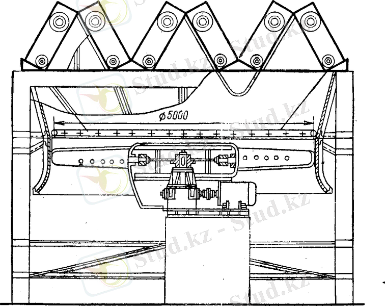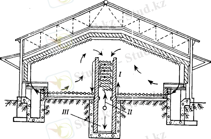 Сурет 6. Шатырлы пеш: 1 - шығатын өнім; 2 - енгізілетін пролукт; 3 - шығатын газдар.