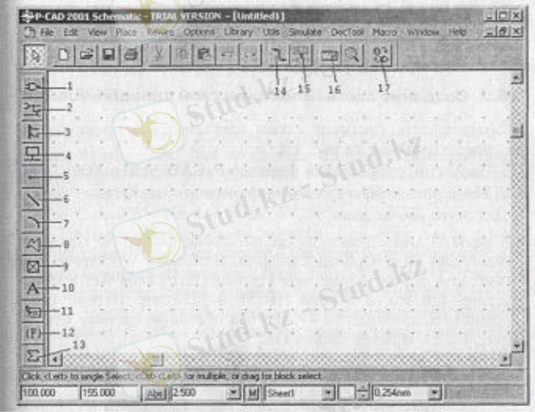 Сурет 1. 1- P-CAD Schematic графикалық редакторының терезесі