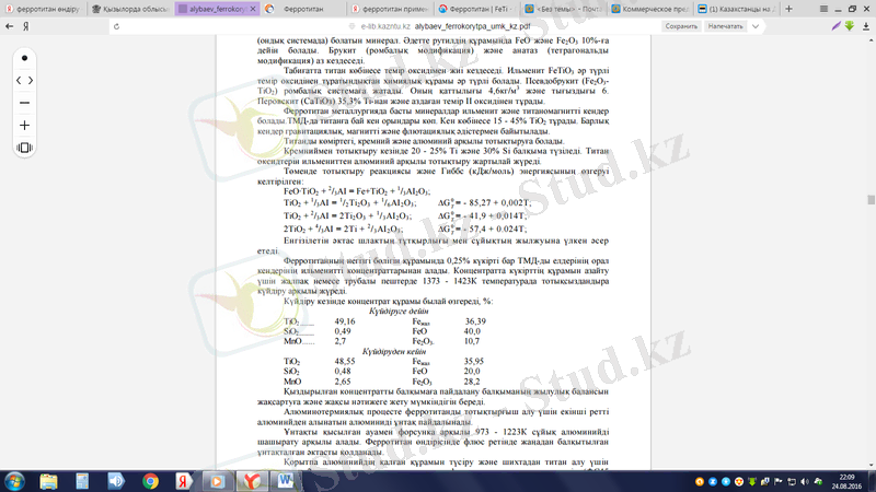Ферротитанды тотықтыру үшін күйдіру температурасы 1100-1150 С күкіртті төмендету үшін 0, 1-0, 5 до 0, 04% және кристалдық тордың бұзылу ильмениттің ауысуына тотығуы темірді тотықтырады, термо процесін арттыруға мүмкіндік береді де титанды пайдалануды ұлғайтады да алюминий шығынын азайтады.