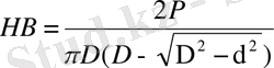 Бринелль әдісі бойынша қаттылықтың саны келесі өрнек арқылы анықталады: