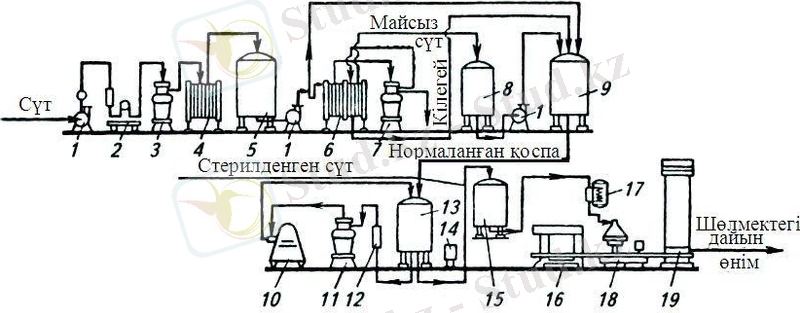 Сурет - 2. Сүтқышқылды сусындардың термостатты әдіспен өңдеу өндірісінің технологиялық желісінің сұлбасы: