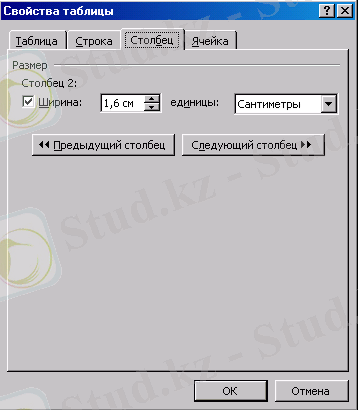 3) Еннiң нақты сандық мәнiн “Бағана енi” өрiсiне енгiзу немесе оның мәлiметiне сәйкес еннің өлшемін орнатамыз (11-сурет) ;