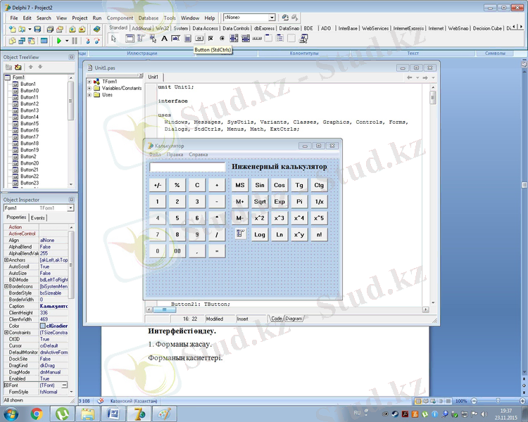Delphi 7 тілінде инженерлік калькуляторды құру - объектілі-бағытталған бағдарламалау бойынша курстық жоба