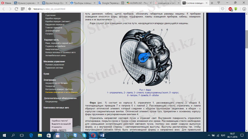 Автокөліктің жарықтандыру мен дабылдау жүйелері: құрылымы, жіктелуі және диагностикасы