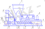 Сурет-3. 2. 3. Қалыптаушы машина - экструдер. 1-бетон араласпасы бар бункер; 2-плиталы вибратор; 3-стабилизатор; 4-стабилизатор; 5-бекітілген дөңгелек; 6-вибратор; 7-шнек; 8-бетонның беткі және астыңғы жағы; 9-дискілі вибратор; 10-рама экструдер; 11-дискілі шнек; 12-арматура дүкені.