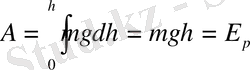биіктікке көтерілген кезде істеген жұмысы потенциалдық энергияның өзгерісіне тең: