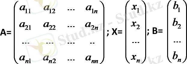 А*Х пен В матрицаларының теңдігінен мына теңдеуді аламыз: