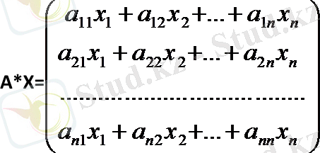 Матрицаларға қолданылатын амалдарға сүйене отырып, А мен Х матрицаларының көбейтіндісі (1) жүйенің сол жағындағы өрнектен анықталған матрицаға тең деп аламыз. Алдымен А мен Х матрицаларының көбейтіндісін анықтайық: