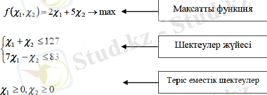 - Мақсатты функция Zmax=c1x1+x2x2(1)
