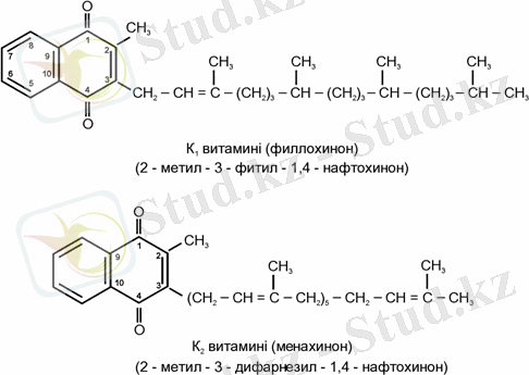 (менахинон) витаминдері бір-бірінен бүйіріндегі болса, ал К