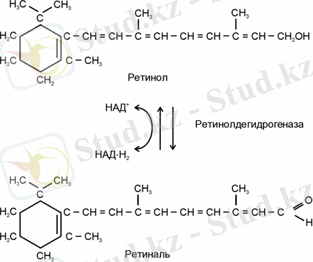 А витамині организмде жетіспесе адам мен малдың өсуі баяулайды, салмағы азаяды. Тері мен ішкі органдардың кілегей қабаты кеуіп, мүйізденеді, көру процесі нашарлайды. Көз торының таяқша клеткаларында родопсин пигменті бар. Ол опсин белогы - мен А витаминінің альдегидтік түрі ретинальдың қосылысы. Жарықта родопсин опсин және ретинальға бөлініп, көздің көру қабілеті жоғарылайды: