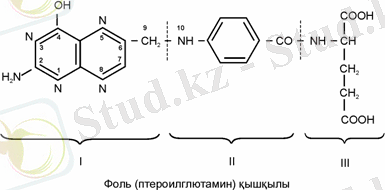 ) тобын - пуриндік негіздер биосинтездерінде тасымалдайды. Жоғарыда аталған заттар мен нуклеин қышқылдарының алмасуында фоль қышқылы негізгі қызмет атқарады. Метионин мен серин - белок, тимин - ДНК, пурин негіздері - ДНК және РНК-ның барлық түрінің биосинтездерінде маңызды қызмет атқарады. Сондықтан, фоль қышқылы жетіспесе организмде зат алмасу процесі өте терең өзгерістерге ұшырайды.