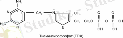 витаминінің тірі организмдерде атқаратын қызметі оның биологиялық әрекетшіл түрі тиаминпирофосфатқа (ТПФ) байланысты. Оның формуласы төмендегідей: