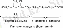 Пантотен қышқылы организм үшін өте қажет күрделі органикалық зат коэнзим - А-ның (HSKоA) құрамына енеді: