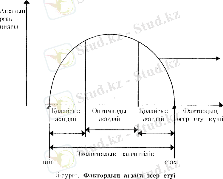 Түрлердің мекен ету ортасының факторларының қандай да бір ауытқу диапозонына бейімделуге қабілетін экологиялық валенттілік деп атайды. 5- сурет.