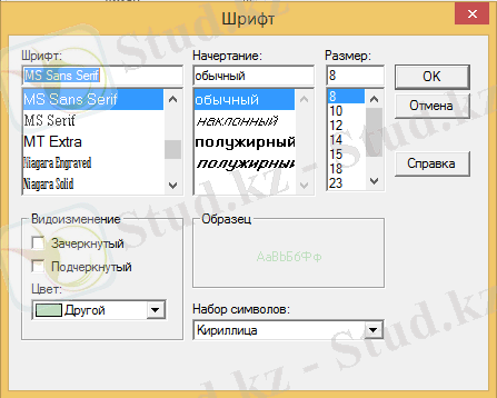 2-сурет. Қаріп терезесі