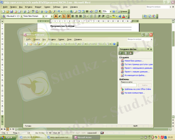 1. 2 МҚБЖ АССЕSS жайлы негізгі түсініктерAccess-тi iскe қосу Пуск - Программалар - Мiсrоsоft Access командаларымен орындалады немесе жұмыс үстелiндегi Access белгiшесiн eкi рет шерту қажет. 1-суретте мәлiметтер қорын ашуға мүмкiндiк беретiн терезе керсетiлген. Осы терезедегi "Жаңа мәлiметтер базасы" (Новая база данных) жолы немесе мәлiметтер базасы бұрын құрылған болса, онда "Мәлiметтер базасын ашу" (Открыть базу данных) пунктiн таңдау қажет.
