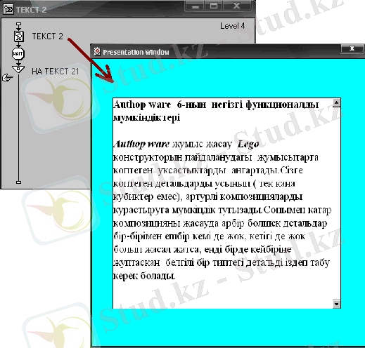 - Macromedia Authorware программасында Macromedia Authorware программасының мүмкіндіктері бойынша электронды оқулықтың комьютерлік моделін жасау;