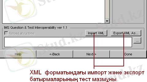 Қашықтықтан оқыту ауқымында белгілі - бір үлгілері бар. Ол ХМL технологиясы негізінде. Осыған орай Authorware 6-да алдын ала дайындалған обьекттер жасақталған. Ол тест үлгілерін жазуда пайдаланылады (көп нұсқаны сайланулар, бланктарды толтыру, т. б. ) . Енді сіз, бар мәліметтерді үлгіге импорттап және экспорттай аласыз. Осы жұмыстарды тездетіп орындау үшін, осы алдын ала дайындалған обьектілер құрамына мына тетіктер орнатылған: Import XML және Export XML ( 4. суреттері)