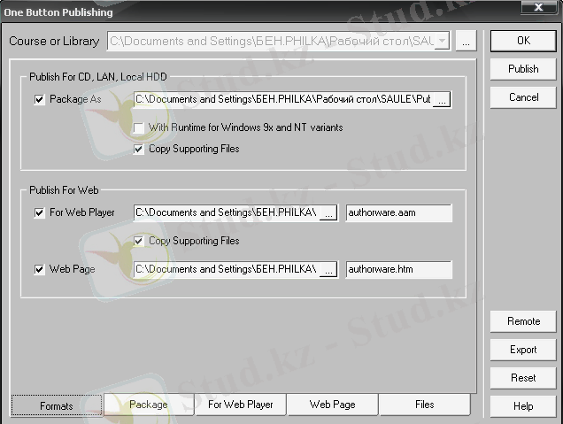 Publish командасын орындау негізінде, Сіз 3 кіріс файлын аласыз. Олар: атқарушы файл (. ехе кеңейтілген), плеерге арналған файл (. абг кеңейтуімен), және Web-браузер терезесіне курсты көшіруді жабдықтайтын НТМL файл.