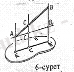 болмайды) . Енді проекция центірін шексіз алыста деп алып, ал проекциялаушы сәулелерді өзара папаллель деп есептейік те жоғарыда қарастырылғандай етіп кеңістікке берілген геометриялық фигураны жазықтыққа проекциялайық (2 сурет) . Мұндағы пороекциялаушы сәулелердің бағыты мен
