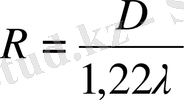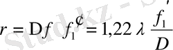 мұндағы D-обьектив артқы ұлы фокус қашықтығы. Сөйтіп дифракциялық дақ радиусы: