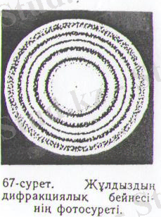 1. Телескоптың ажырату күші. Алыстағы жұлдыздарды бақылағанда оның объективіне паралелль сәулелер шоғы түседі. Объективтің оправасы бұл жағдайда 18 - парагрфта баяндалған кішкене дөңгелек тесіктің ролін атқарады да сол объективтің фокус жазықтығында жұлдыздың дөңгелек дифракциялық кескінің нәзік детальдарын ажырату қиындайды. Сондай детальдарды ажыратудың бір шегі болады. Енді қысқаша осы мәселеге тоқталамыз. Ол кескінді біз окуляр арқылы көреміз; сонда оның ортасында жарық дөңгелек дақ, оны қоршаған қара-қоңыр шеңбер, одан соң интенсивті бәсеңдеу жарық шеңбер, одан әрі осылайша кезектес орналасқан қара-қоңыр жарық ағынының, шамамен 84% - дейі орталық жарық дақ үлесіне, тек 16% - дейі ғана оны қоршаған жарық шеңберлер үлгісінде тиеді. Сондықтан, біз алдағы жерде ол шеңберлерді үлесіне тиеді. Сондықтан, біз алдағы жерде ол шеңберлерді есепке алмаймыз . Телескоппен бақылағанда көрінетін жұлдыз осы орталық жарық дақ деп санаймыз.
