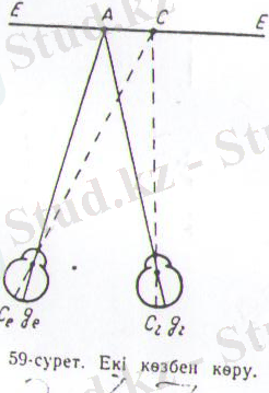 Екі көзбен көру арқасында берілген денеге дейінгі аралықты анықтап, денелердің қашықтығын өз ара салыстыра аламыз. Осының нәтижесінде кеңістік тереңдігі туралы, нәрсенің көлемдік бейнесі жөнінде ұғым туады. Бақыланатын дене көзден неғұрлым алыс болса, ол денге бағытталған көру осьтері арасындағы бұрыш соғұрлым кішкене болады. Соның нәтижесінде кеңістік тереңдігі (көру бағыты бойынша қашықтық) сезілмейді, көз өте алыстағы денелердің алыс - жақындығы ажырата алмайды. Сондықтан барлық жұлдыздардың қашықтығы бірдей болып көрінеді. Арнаулы приборларда пайдаланып, кеңістік сезінуді бірнеше рет күшейтуге болады.