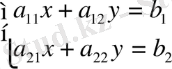 Екі белгісізі бар сызықтық екі теңдеу жүйесін қарастырайық