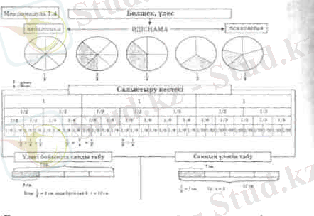 - Бастауыш сынып математикасында үлес және бөлшек ұғымдарын кеңейтіп оқытудың маңызын сипаттау ;