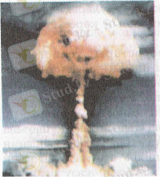 Ядролық қаруды сынау алғашында ғылым мен техниканы дамыту бағытында сипат алғанымен, кейiннен атом бомбасы соғыс мақсатында қолданылды. Атом бомбасын алғаш рет АҚШ 1945 жылы Хиросима мен Нагасаки қалаларына тастады. Адамзат тарихындағы бұл қасiреттің iзi бүгiнге дейiн жапондықтарды зардап шектiрiп отырғаны әлемге белгiлi. Ал Қазақстан жерiнде сыналған 500-ден астам атом бомбасының зардабы айтпаса да түciнiктi болар (11-сурет) . '