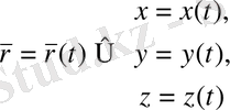 1. Параметірленген қисық. Егер қисық берілсе, оның бойымен уақыт арасында ағымды М нүктесі қозғалады деп есептеуімізге болады. Уақыттың әр бір t сәтінде бұл нүкте қисықтта белгілі орын алады, атап аәтқанда ағымды М нүктесінің радиус-векторы t параметрін