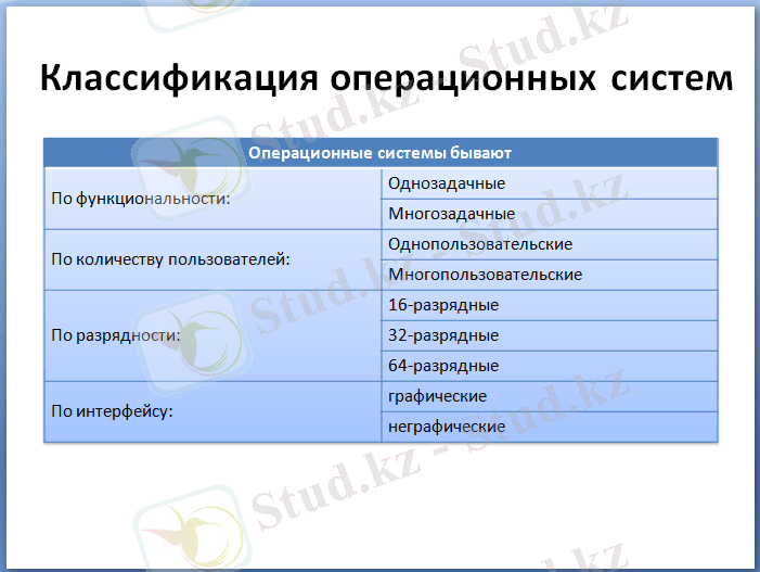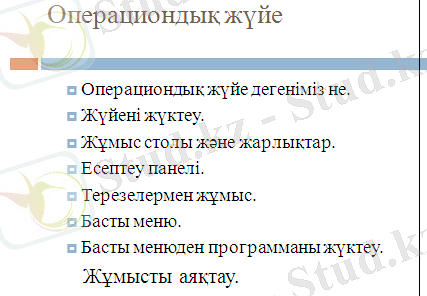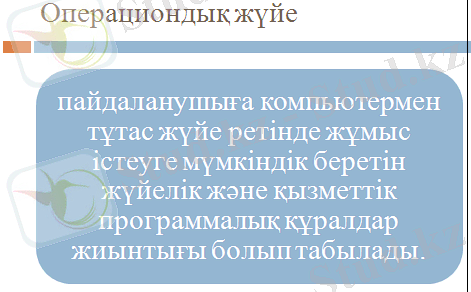 8. Слайд тақырыбын «Операциондық жүйе» деп, ал төменге суретте көрсетілген мәтінді енгізіңіз.