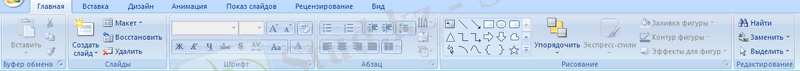 - Главная. MS Office тің стандартты менюі (презентациялар, Word қа презентацияларды аудару командалары да кіреді) .