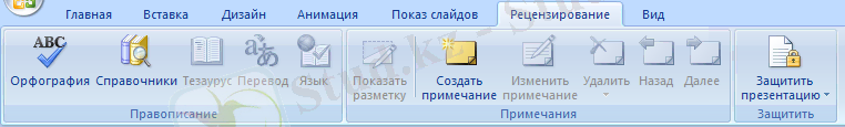 - Рецензирование. Презентацияның мәтінін редактрлеуге және ескертпелер құруға арналған.