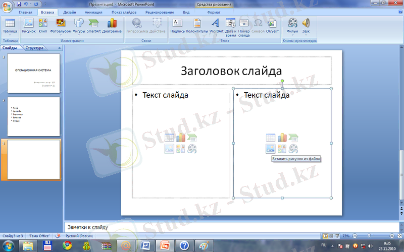 - Слайд тақырыбын«Операциондық жүйе», ал слайд мәтіні өрісінде