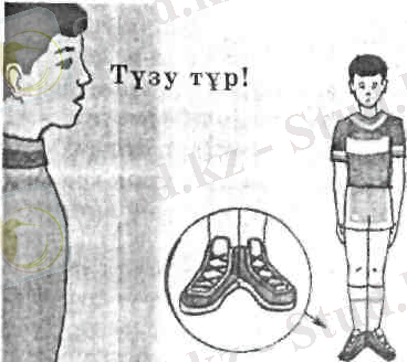 "Сапқа тұрыңдар!" деген команда естілісімен оқушылар бойына қарай саптағы өз орындарына тез барып тұра қалуы керек. Команда беруші бағыттаушы ретінде саптың орнын көрсетеді (суретке қара. )