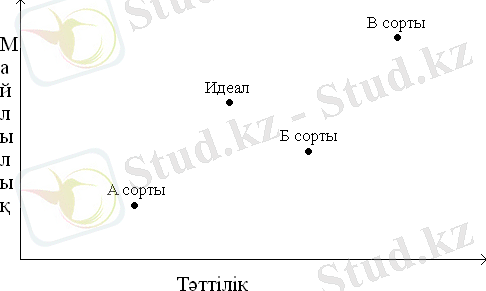 2 сурет. Балмұздақ сорттарын майлылық және тәттілік көрсеткіштері бойынша салыстыру