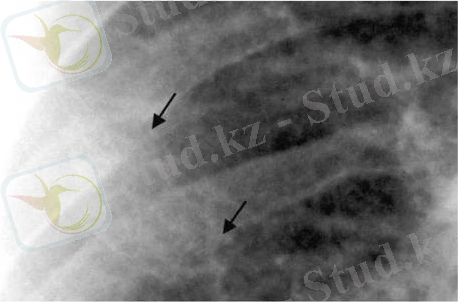 Пневмоторакс деп плева қуысына ауа жиналуды айтамыз. Клиникалық көрінісі ентігу, тахикардия, жұмсақ тіндердің эмфеземасы, перкусия жасағанда тимпаникалық дыбыс, аускультацияда тыныс өзгерістері анықталады.