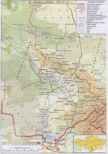 1 сурет. Оңтүстік Қазақстанның физикалық картасы
