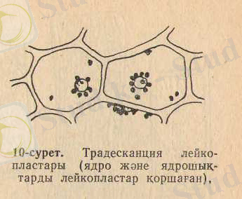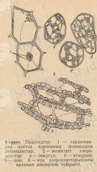 Пластидтер. Клеткалардың ең басты компоненттерінің бірі - пластидтер. Олар лейкопластар (түссіз), хлоропластар (жасыл түсті), хромопластар (қызыл қоңыр, сары түсті) болып келеді. Пластидтер өсімдіктердің өсіп дамуында және сумен қоректенуінде өте маңызды роль атқарады.