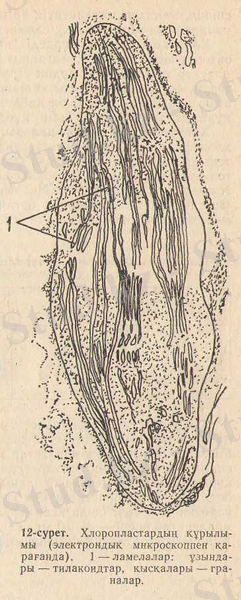 Хлоропластар. Хлоропластар - өсімдік клеткаларына тән органоидтардын, бірі. Хлоропласта фотосинтез процесі өтеді, өйткені онда хлорофилдер мол болады. Хлоропласта стромалар мен қырлы заттар кездеседі. Олар хлоропластын, негізгі бөлімі.