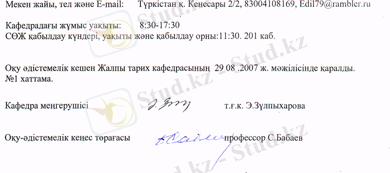 Оқу әдістемелік кешенді құрастырғандар: аға оқытушы Е. Төлегенов