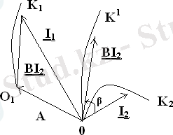 - 1. 2-суретте көрсетілген ОК2доғасы I2тогы шеңберлік диаграммасы болсын дейік. Сонда I2тогын тұрақты коэффициент B=beiβкөбейтсек I векторы ұзындығывесеге ұзарады және β бұрышына бұрылады. Сондықтан В*I2векторының диаграммасы О нүктесі арқылы жүргізілген шеңбердің ОК доғасы болмақ. Негізгі іздестіріп отырған I токтың шеңберлі диаграммасын тұрғызу үшін О нүктесінен а векторын жүргіземіз