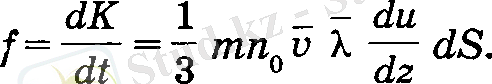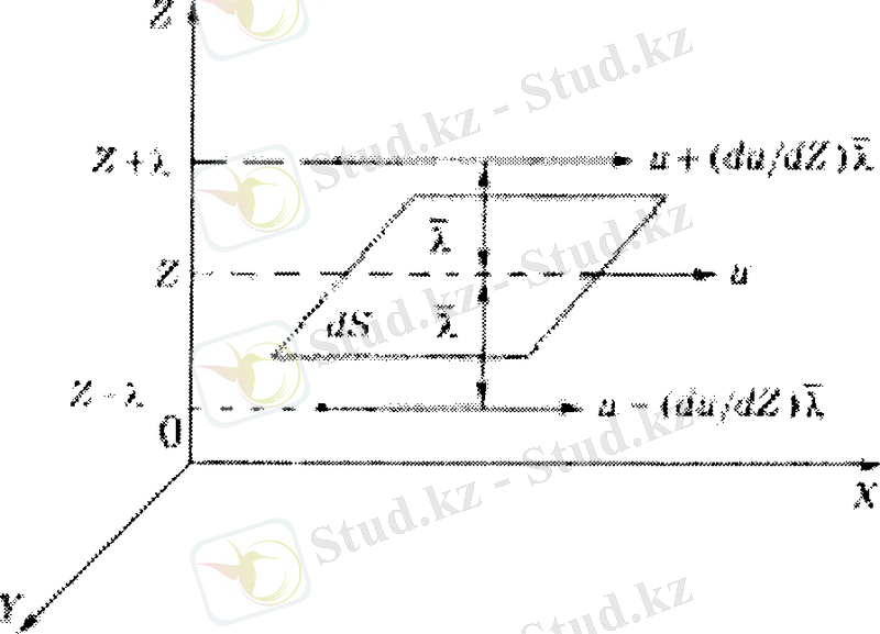 Молекуланың соңғы соқтыгысуы dS ауданынан X қашықтықта байқалатыны түсінікті. Сондықтан, төменгі қабаттағы газ ағынынан жоғарғы қабатқа отетін молекуланың координатасы z - λ , ал жоғарыдан томенгі қабатка өтетін молекуланың