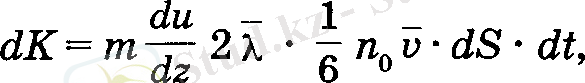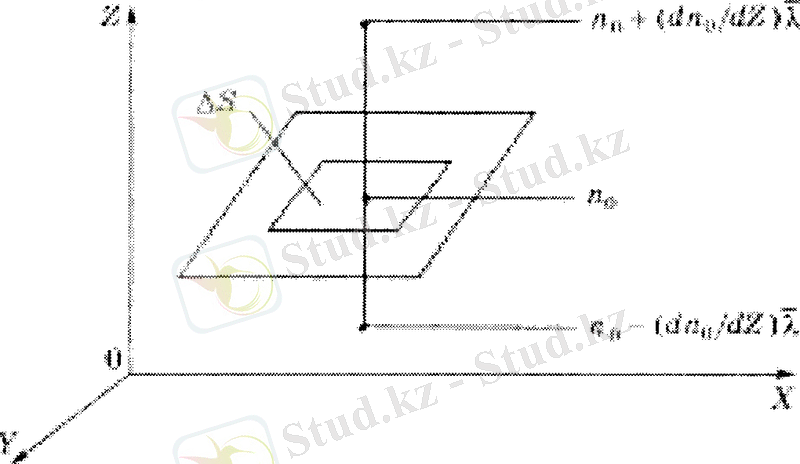 молекулалар отеді деп саналады. Осы шамалардың айырымы dS аудан аркылы бірлік уақытта z - λ қабаттан z+ λ қабатқа ауысатын олекулалардың санын береді: