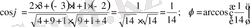 4 - мысал . 2х - 3у + z + 1 = 0 және 3х + у - 2z + 7 = 0 жазықтарының арасындағы бұрышты анықтау керек.