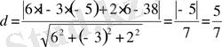 5 - мысал . М 0 (1; -5; 6) нүктеден 6х - 3у + 2z - 38 = 0 жазықтыққа дейінгі ара қашықтықты табу керек.