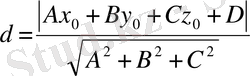 4) М 0 (x 0 ; y 0 ; z 0 ) нүктесінен Ax + By + Cz + D = 0 теңдеуімен анықталатын жазықтыққа дейінгі қашықтықты есептейтін формула