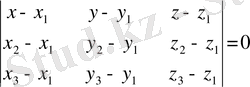 5) Берілген А 0 (x 1 ; y 1 ; z 1 ), В(x 2 ; y 2 ; z 2 ) және С(x 3 ; y 3 ; z 3 ) нүктелері арқылы өтетін жазықтықты анықтайтын формула